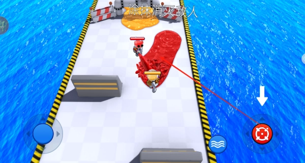 1、移动摇杆可操控角色移动,攻击摇杆能发射颜料弹幕,潜水摇杆则用于触发蓝色区域的加速与回血效果。