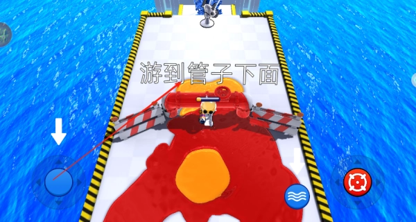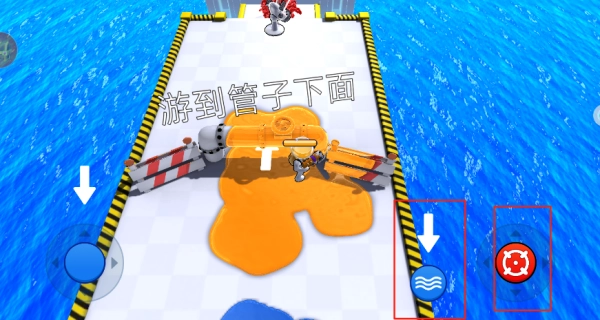 4、点击右侧的波浪按钮,就能操控你的角色游泳,轻松避开敌人以顺利过关。