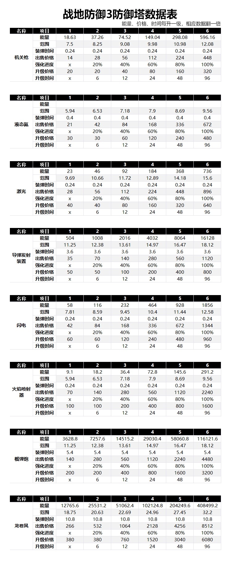 战地防御3防御塔数据图