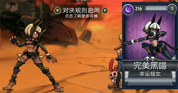 3、完美黑喵,招牌技能对猫女生效10秒后,会施加永久死亡标记并触发退咒效果;若敌方带有该标记且血量低于50%,头部攻击命中时将有10%的概率直接将其击败。