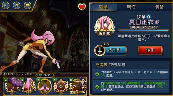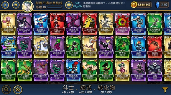4、收藏系统是查看和养成已获得卡牌的功能模块。界面左下角可调整视角的缩放比例,右下角设有筛选功能,便于快速定位目标卡牌。仓库的存储容量支持通过消耗钻石进行扩充。当前版本游戏内共有13位角色,卡牌按稀有度划分为钻、金、银、铜四个等级,属性则涵盖光、暗、风、水、火、无六种类型——其中风属性克制水属性,水属性克制火属性,火属性克制风属性,光与暗属性相互克制,无属性不存在克制关系。在角色详情界面,可查看该角色卡牌的招牌技(每张卡牌对应一个)与天元技(每个角色对应一个);技能树界面用于提升角色的基础能力,具体效果可在该界面内查阅。强化功能的操作方式是将其他卡牌作为经验素材喂养给目标卡牌,但新手阶段不建议进行喂养操作,原因在于角色满级后可通过升阶提升至更高稀有度,而升阶所需材料为若干张与当前卡牌同角色、同稀有度的卡牌(金升钻的情况除外)。此外,角色界面下方的空槽用于配置技能。