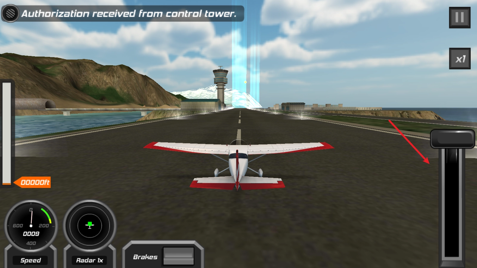 2、进入之后,先把右侧的操纵杆往上拉,使飞机开始移动。