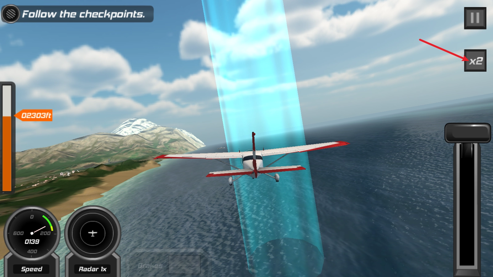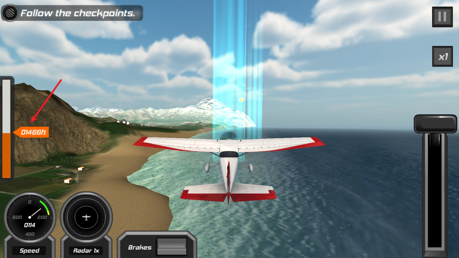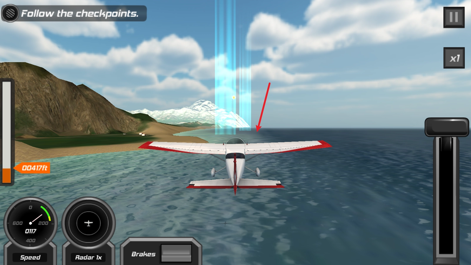 3、随后通过上下摆动手机来控制飞机的升起与降落。