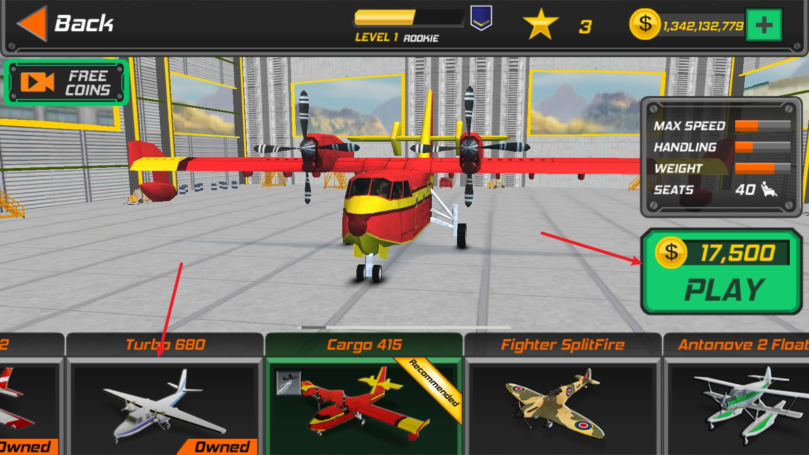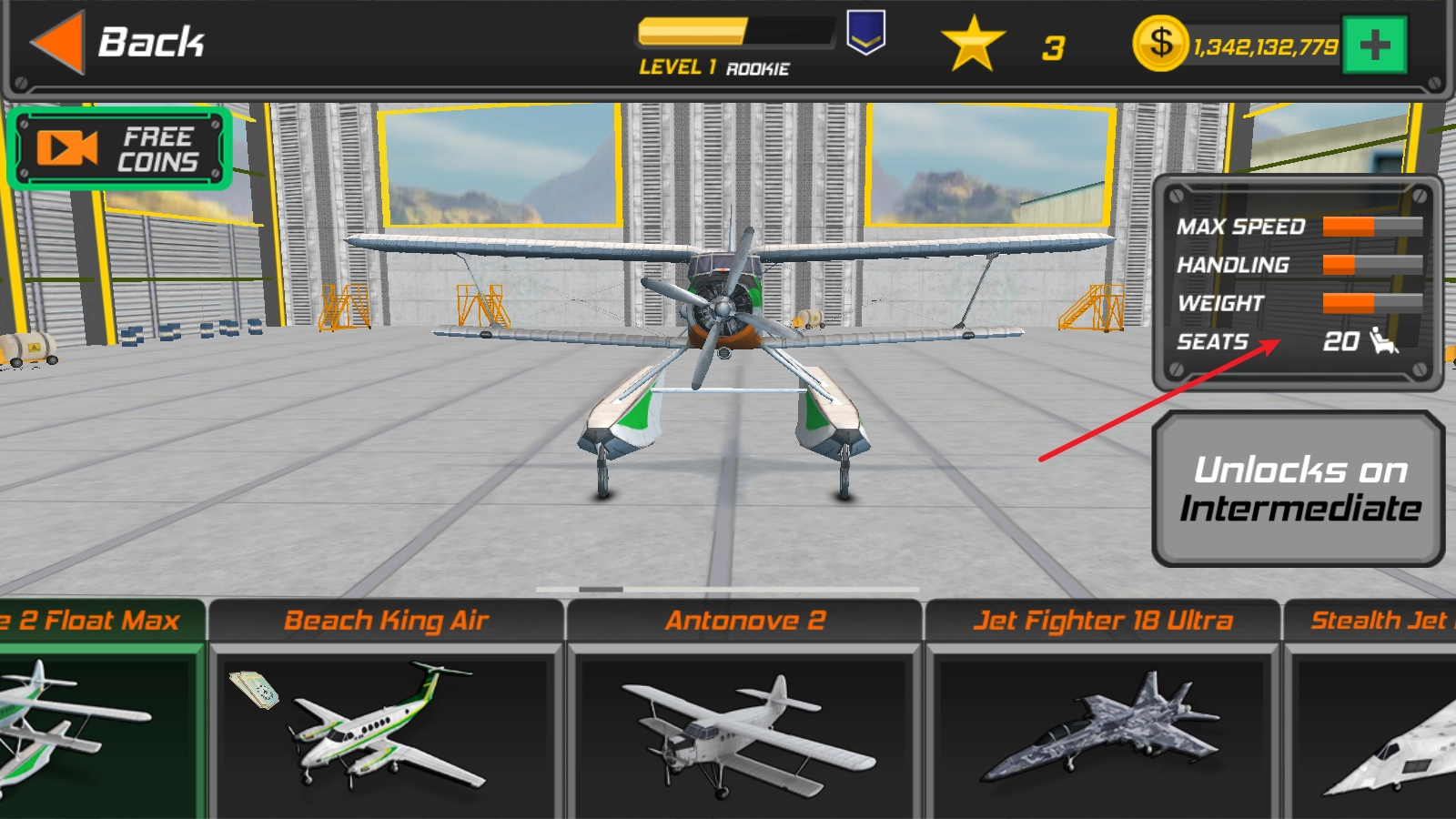 1、每次游戏启动前,我们都可以挑选各类飞机来驾驶。