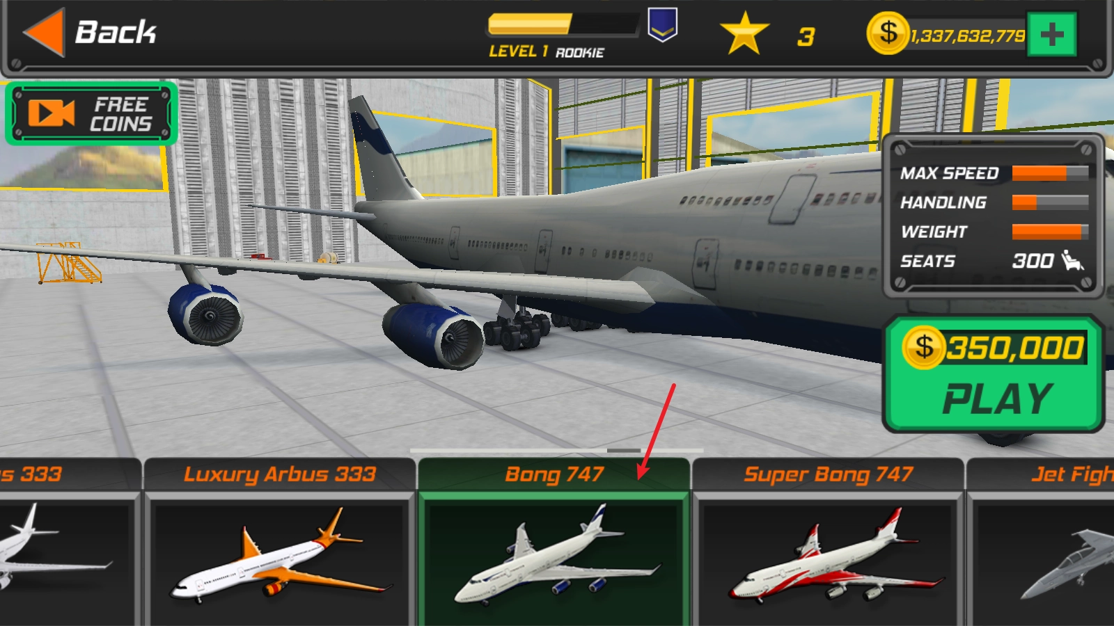 这里有多种不同类型的飞机可供使用,你还能看到熟悉的波音747。