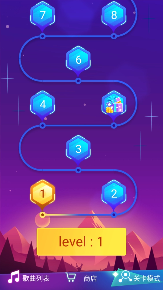 8、除了可以自由选择歌曲的玩法外,还设有充满趣味的闯关模式哦。