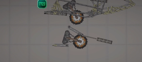 1、首先制作一个简易的起落架收放装置,所有点位均由轮胎引擎连接至铁块,该结构自然也可同时应用于后起落架。