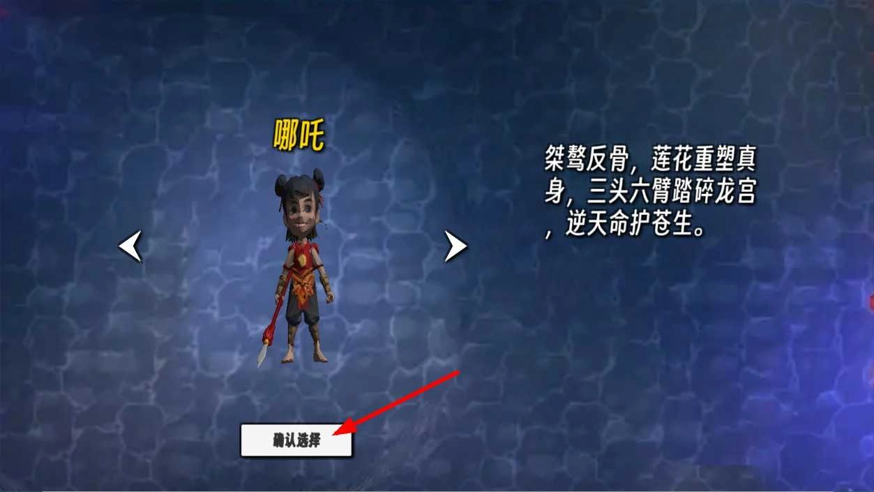 在角色选择界面,挑选哪吒这一角色,点击确认选择按钮,就能使用哪吒开启游戏。