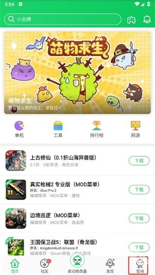 首先打开葫芦侠App,进入首页后点击右下角的【空间】。