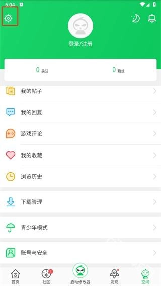 接下来,在空间页面里,我们要点击的是左上角的【设置图标】。