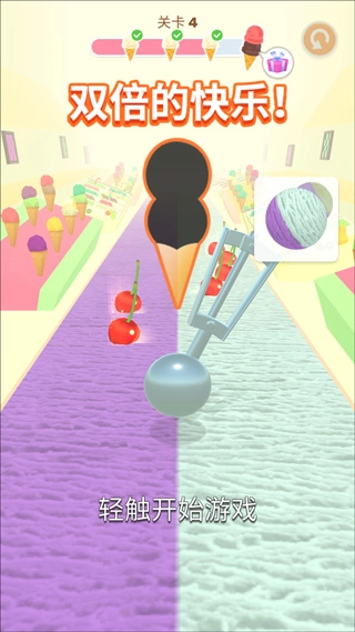1、进入游戏即开始新手教程,长按屏幕可长挖冰淇淋