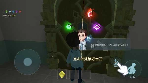 4、抵达大门后,点击此处镶嵌宝石,即可完成逃生!