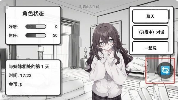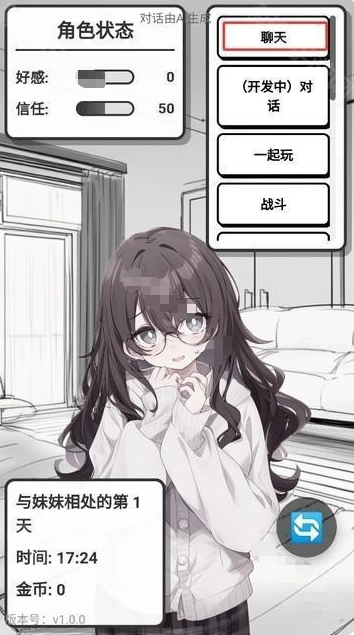 3.点击聊天后,点击下方的输入栏可以输入内容,也可以选择推荐内容,点击发送即可与妹妹对话,每次聊天都会有好感度变化