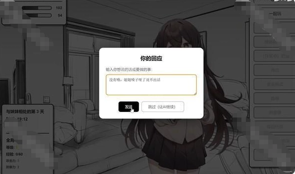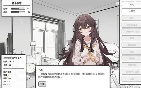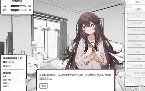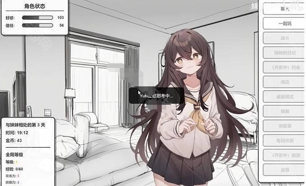 妹居物语是一款深度融合了人工智能技术的恋爱模拟养成游戏。你需要与一位名为 Yuki 的虚拟少女在同一屋檐下生活,并建立起独特的情感羁绊。与传统的、选项固定的恋爱模拟游戏不同,本作最大的特色是允许你通过自由的文本输入与Yuki进行对话。你的每一次互动,无论是聊天、赠送礼物还是一起完成日常事务,都会动态地影响Yuki对你的好感度、情绪状态和性格倾向。
