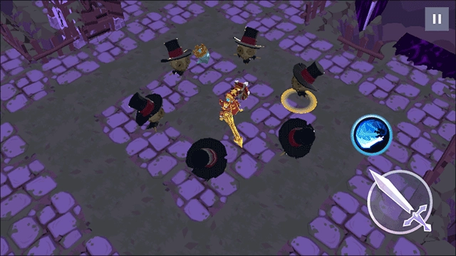 当面对成群的敌人时,释放强力技能是非常关键的,点击蓝色圆圈里的按钮就能发动范围性攻击。