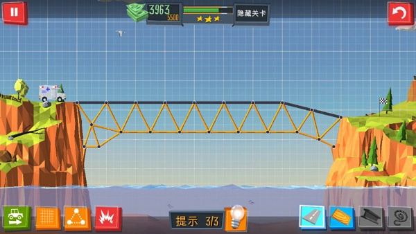 这是一款广受欢迎的经典休闲益智类建造闯关游戏,玩家将化身为工程师,利用有限的材料,设计并搭建出形态各异、结构不同的桥梁,确保其能够承载车辆通行的重量。游戏包含三十六个难度各不相同的关卡,每个关卡都需要玩家采用独特的策略和方法来完成挑战,兼具趣味性与挑战性,能为玩家带来丰富多样的游戏体验。