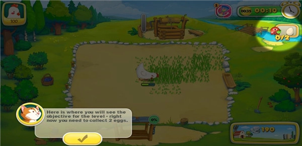 在这个区域,你能了解到当前关卡的任务要求,此刻你需要完成收集两枚鸡蛋的目标。