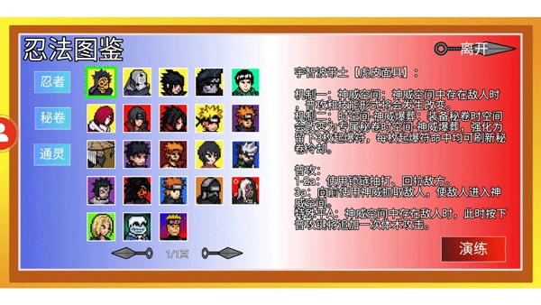 点击演练可以看到选择忍者、秘卷、通灵的队伍组成