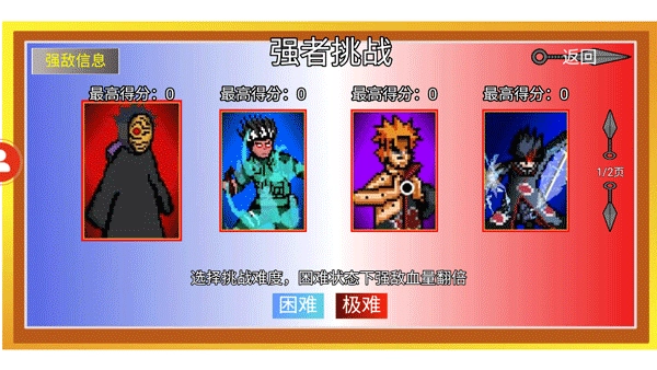 在像素火影2024最新版本中,你可以提升角色等级,击败更多敌人,解锁更多有趣的玩法和丰富内容。