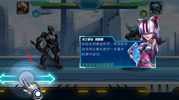 1、玩家需要控制摇杆来帮助机甲前来移动;