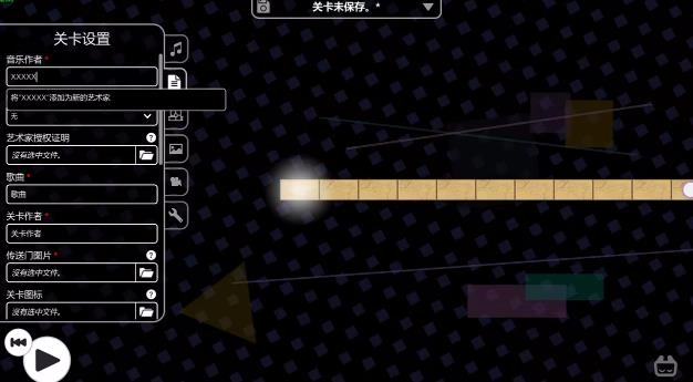 2、先填写音乐作者和歌曲名称,接着点击上方的“保存关卡”按钮。