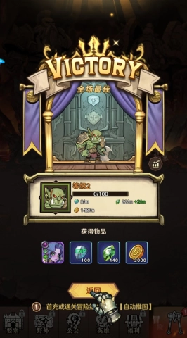 成功击败关卡敌人可赢取宝箱奖励和成长资源