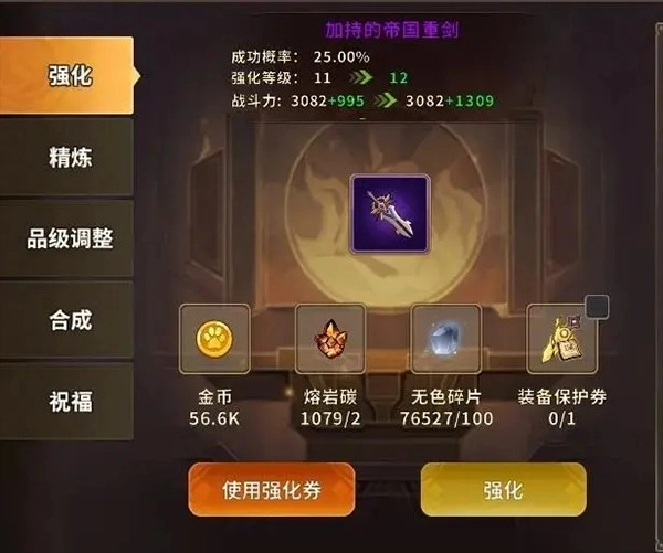 武器在强化到+15之前就不要使用保护券了,直接用金币硬拉上去,这保护券十分滴珍贵,应该让高强武器先用。