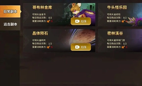 ps:晶体陨石和密林溪谷不要扫荡,后面翻牌子可以多翻一个广告牌,双倍资源。