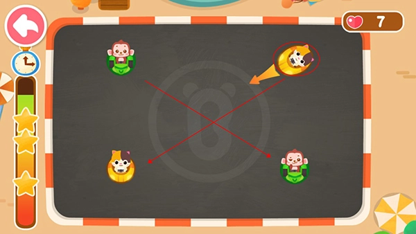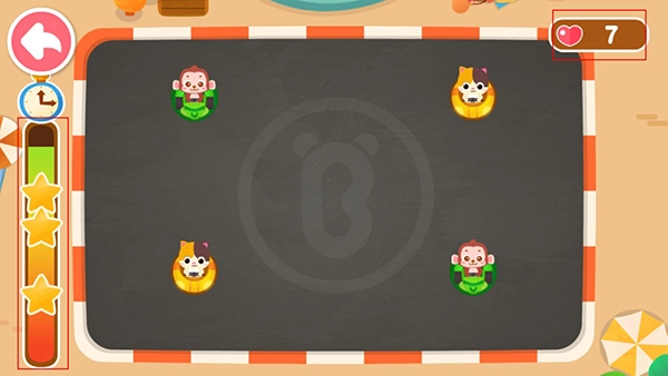 这款游戏设计了多样的挑战关卡,每个关卡的难度梯度各不相同,在限定时间内完成任务的过程中,能充分锻炼孩子的快速反应与事物辨别能力。