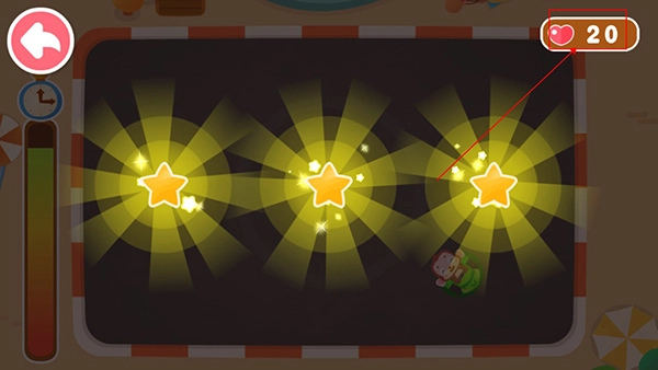 进入关卡后,左边会出现计时器,通关速度越快,得到的星星就越多,这些星星还能转换成右上角的爱心呢!