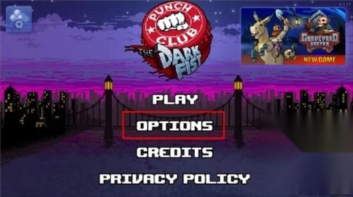1、打开拳击俱乐部手机版应用后,找到并点击“options”选项;
