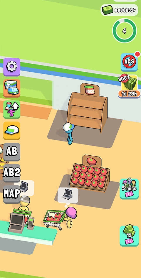 作为超市的经营者,你得通过满足顾客的各种需求来获取收益,然后用这些赚到的钱去升级店铺的各类设施。