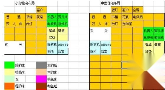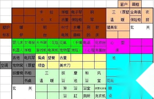 推荐理由:叠和卫生间在前期就已存在,期间的四个组合设施在前期就能开发出来。橙之床出现得很早(解锁条件:快适排名第一),并且厨房内的四个组合设施也能在很早的时候获取。