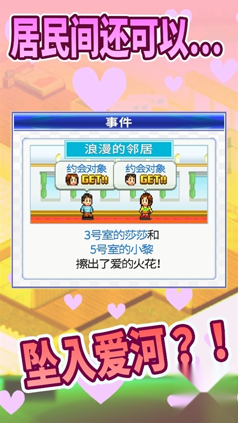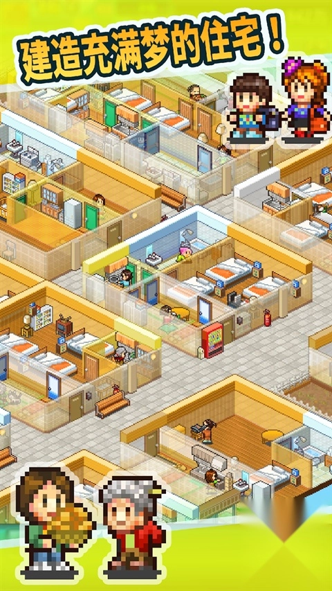 开罗旗下的《住宅梦物语》是一款轻松休闲又玩法有趣的模拟经营放置游戏,它延续了开罗一贯的经典玩法与像素画风,将舞台设定在一栋公寓内。玩家化身公寓房东,需要巧妙规划房屋布局,以此吸引更多租客入住——若布置合理,还能提升房间的舒适度与各项属性!游戏中不仅要接待性格各异的租客,还有多样房间类型和丰富搭配组合等待探索。想体验的话,就来本站下载这款游戏试试吧!