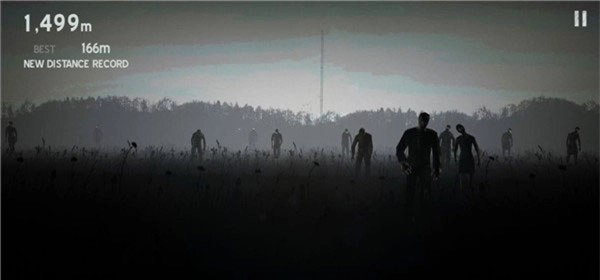 选择好道具后,点击“PLAY”按钮就能开启游戏。在角色前进的过程里,屏幕左上角会实时记录已经奔跑过的距离,这个记录会一直持续到角色死亡为止。