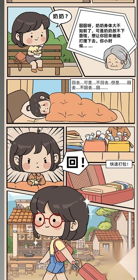 1、开启奶奶的面馆这款游戏,进入游戏后,当中的漫画会向玩家讲述剧情背景。