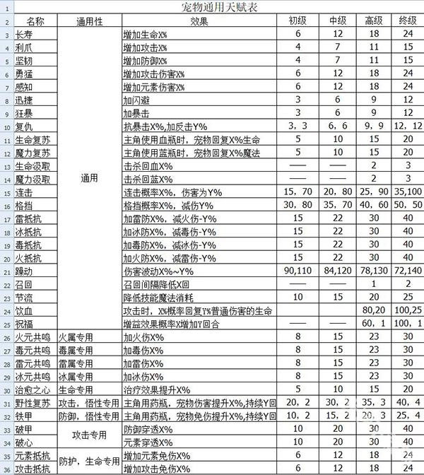 海拉曾是老版本里的最强肉宠,不过随着版本不断更新迭代,它也渐渐失去了往日的强势地位,所以建议大家不必太过执着于宠物排行榜。最后,再为大家附上一份宠物通用天赋表,希望这份表格能帮助大家更精准地挑选到心仪的宠物,让大家在伽蓝城堡的冒险之旅中走得更顺利、更远!
