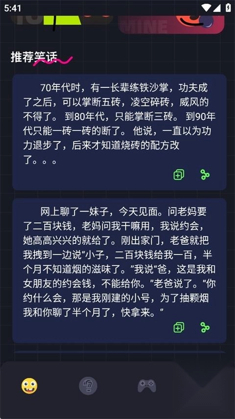 这里有多种类型的笑话可供选择,像幽默风趣的、充满恶搞趣味的、巧用双关语的以及让人会心一笑的冷笑话等,每一则笑话都经过了用心筛选,力求能让您尽情展露笑容、愉悦心情。