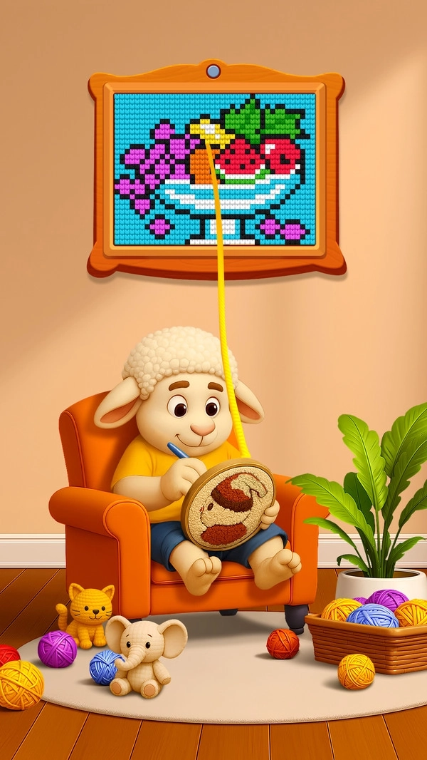 2.三球连线:集齐三个相同颜色毛线球即可完成消除,解锁色彩并点亮像素画,玩法简单直观却充满变化与持续吸引力。