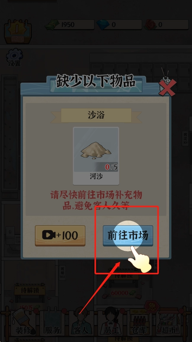 1、接管浴场:进入游戏后,玩家接管一家浴场,开启日常运营管理。