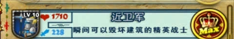 近卫军擅长攻破敌方营垒、摧毁防御塔楼,对敌方建筑拥有极高的伤害加成效果,每次出征只需带上三名,就能高效瓦解敌军的指挥中枢。