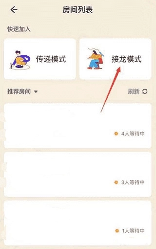 在房间列表中,点击接龙模式