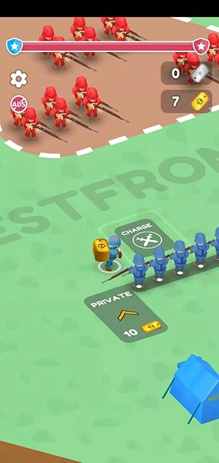 小小指挥官的英文名称为ArmyCommander,这是一款充满趣味的休闲放置策略闯关游戏。其玩法十分简单:玩家通过布置己方队伍与敌人展开战斗,尽可能多地收集铭牌,利用这些铭牌来增强自身战斗力和士兵属性,从而不断提升军衔。