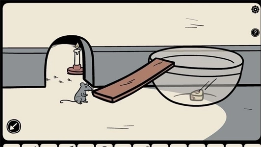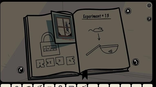 11、用钥匙开启柜子,取出玻璃碗,依照笔记本的提示制作捕鼠陷阱,投放后捕捉到老鼠,从而获取钥匙。