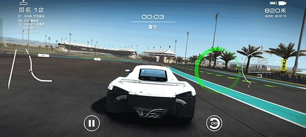 7、321当321的倒计时结束后就可以开始冲刺啦,我选择的驾驶模式是通过重力感应来控制方向,右侧按键负责加速,左侧按键则用于刹车和漂移操作。