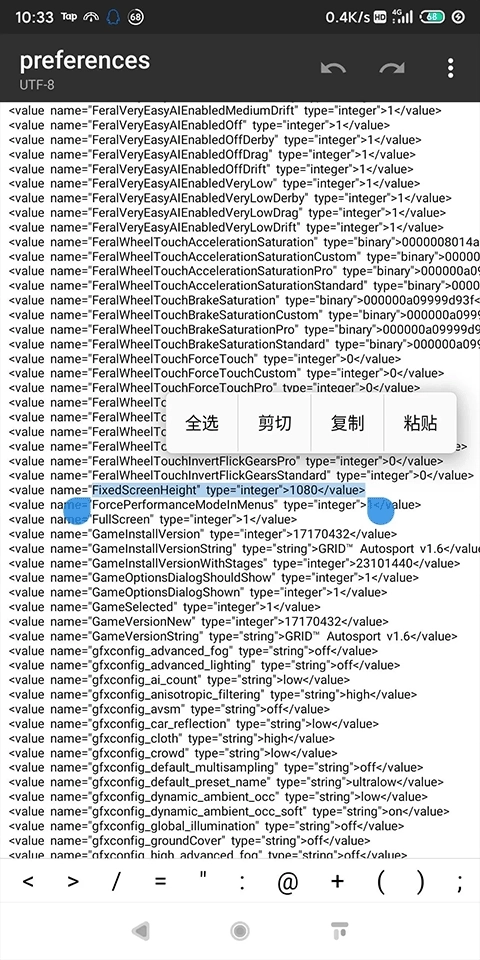 1、用MT管理器,无需root权限就能修改,找到这个路径:/Android/data/com.feralinteractive.gridas/files/feral__support/下的preferences文件。