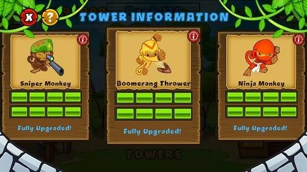 需要分别建造皇家飞行员、超人猴子、魔法猴子、猴子村以及香蕉工厂。这之中,猴子村具备为防御塔提供各类补给的功能,不过它的造价相对较高;而香蕉农场则可以在每一关定时产出具有价值的香蕉,其价格同样不低。