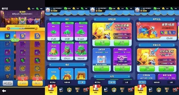 当前版本采用混合变现模式,内购部分涵盖钻石直购、通行证、各类礼包等;激励视频则提供免费钻石奖励、关卡内复活等功能。
