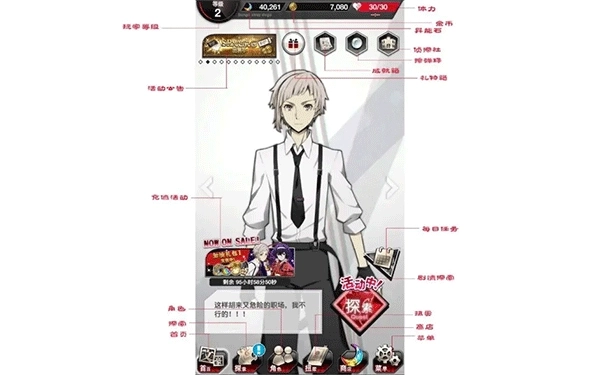 9、侦探社:在侦探社中,每隔一段时间能从对应的角色那里领取奖励。使用可用素材或异能石来强化侦探社内角色的工作环境,这样可以缩短奖励的等待时间,还能提升奖励的等级。