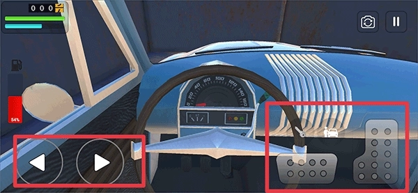 5、上车后就能驾驶车辆在道路上行驶了,左边的按键用来控制方向,右边的按键分别对应倒车和前进功能。
